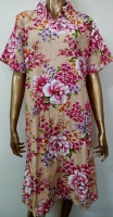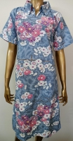 Purple Flowers Blue Leaves Shirt Sleeve Dress